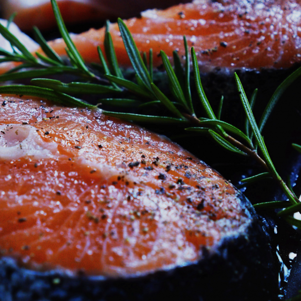 Lachssteak auf der Haut knusprig gegrillt