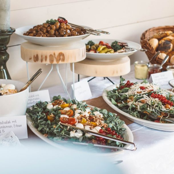 Ob an sonnigen oder verregneten Tagen – unser Buffet Sunshine verwöhnt Sie jederzeit auf besondere Art und Weise. Perfekt für einen Abend bei Kerzenlicht auf der Terrasse oder für die gemütliche Gartenparty mit lieben Freunden. Wenn Sie die Sonne gern ins Haus lassen möchten, können Sie Sunshine natürlich auch beim lebhaften Spieleabend mit den Gästen genießen.